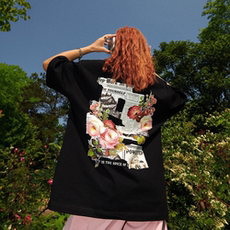 Floral Cat T shirt 新款夏季个性花朵猫咪印花T恤女小众风女装夏