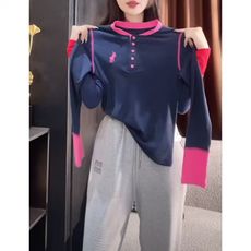 国潮牌美式撞色哈苏线长袖t恤男女2025春秋新款宽松小众情侣上衣