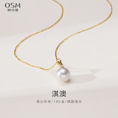 欧诗漫海水珍珠吊坠单颗圆形澳白珍珠项链18K金镜面强光 淇澳