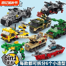 男孩积木汽车益智儿童拼装玩具生日礼物6合1飞机坦克机甲军事火车