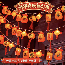 新年喜庆红灯笼福字灯串春节装饰彩灯闪灯元宵节布置氛围流苏灯笼