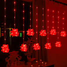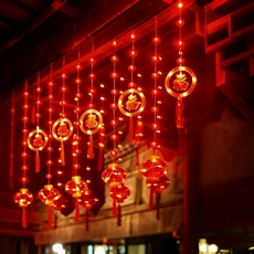 春节新年红灯笼窗帘灯节日布置家用过年装饰灯彩灯闪灯串灯中国结