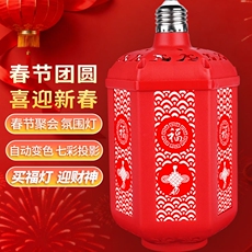 新年守夜灯笼led灯2026春节阳台装饰 大红灯笼伴侣内置七彩旋转灯