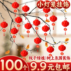 小灯笼挂饰小红植绒新春节盆景装饰大红迷你布置室内防水户外挂树