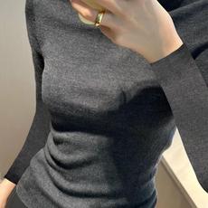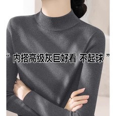 秋冬修身紧身半高领内搭长袖打底针织衫上衣灰色高级感中领毛衣女