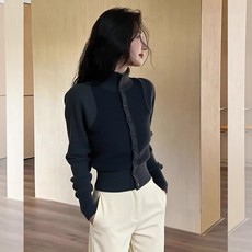 秋冬韩系深灰色半高领多纽扣针织衫女宽松显瘦软糯毛衣高级感上衣