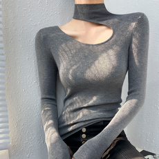 半高领灰色毛衣打底衫女秋季高级感内搭独特别致小心机镂空羊毛衫