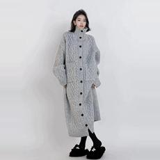 吴童童灰色高领长袖毛衣外套女秋冬新款韩系慵懒宽松针织开衫上衣