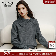 慵懒风灰色半高领排扣毛衣女秋冬宽松时尚百搭套头长袖针织衫上衣