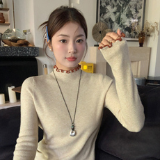 2025秋冬新款送项链高领灰色针织打底衫女上衣洋气内搭套头毛衣暖