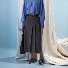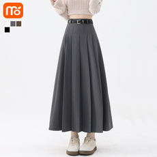 MJ STYLE灰色百褶西装裙女春秋半身裙高腰休闲大摆a字过膝中长裙