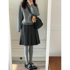 少女半裙m*iu风百褶羊毛短裙针织裙秋冬搭配复古灰色减龄高腰百搭