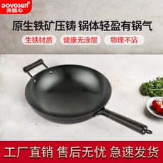 铸味铸铁锅真无涂层大容量少油烟电磁炉家用双耳老式不粘锅炒菜锅