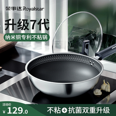 荣事达不锈钢炒锅蜂窝不粘锅家用炒锅电磁炉燃气适用无油烟炒菜锅