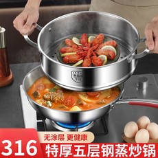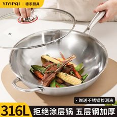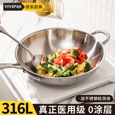 316L不锈钢炒锅无涂层油烟不粘锅家用燃气灶电磁炉燃气炉通用蒸锅