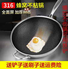 不锈钢炒锅316食品级加厚电磁炉专用无油烟炒菜锅家用无涂层不粘