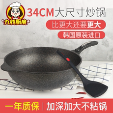 韩国麦饭石炒锅34cm不粘锅加深家用无油烟炒菜锅电磁炉燃气通用