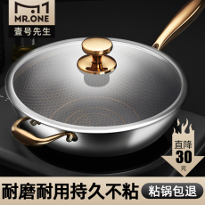 德系无油烟不粘锅炒锅316不锈钢家用无涂层炒菜锅电磁炉燃气适用