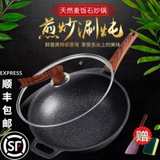 麦饭石不粘锅炒锅无油烟不沾炒菜锅电磁炉通用平底锅家用燃气灶锅
