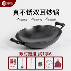 德国不锈钢炒锅不粘煎炒锅家用无涂层电磁炉燃气灶通用无油烟炒锅