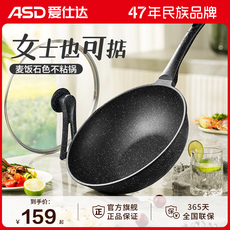 爱仕达炒锅不粘锅无油烟平底锅家用电磁炉炒菜锅专用锅煤气灶适用