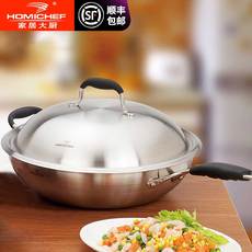 [家居大厨]家用无涂层不锈钢炒锅不粘少油烟燃气电磁炉通用炒菜锅