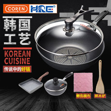 韩国麦饭石不粘锅进口无油烟炒锅电磁炉煤气灶燃气灶家用炒菜锅