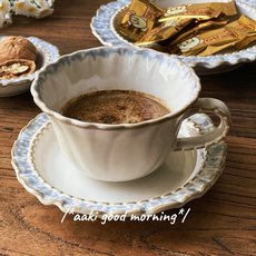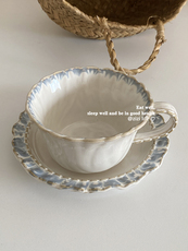 浅瑾秋秋 复古烟蓝陶瓷咖啡杯碟套装高颜值高质感手绘花边拿铁杯