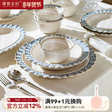 摩登主妇烟蓝陶瓷碗盘餐具家用2026新款米饭碗高级感轻奢碗筷套装