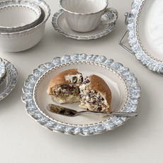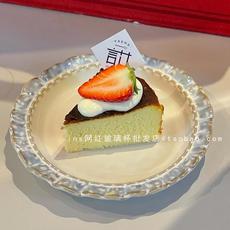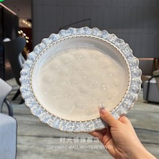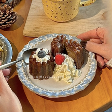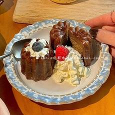 高颜值法式烟蓝花边甜品盘精致高级感陶瓷水果沙拉盘蛋糕盘甜点盘