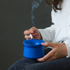 客厅陶瓷烟灰缸个性潮流家用大号烟缸蓝色描金时尚实用欧式复古风