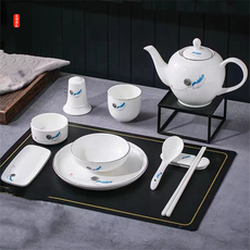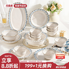 烟蓝花边陶瓷餐具套装釉下彩家用盘子大汤碗北欧简约餐具