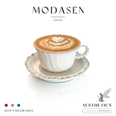 法式复古风ins烟蓝裙边拿铁拉花杯碟宫廷风精致浮雕咖啡杯陶瓷杯