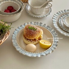 ins复古小众烟蓝系列餐具套装高级感窑变釉花边家用碗盘咖啡杯子