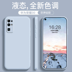 适用于荣耀v30手机壳新款烟蓝灰荣耀v40液态硅胶V30pro防摔直边简约高档潮流纯色软壳男女情侣款磨砂保护套