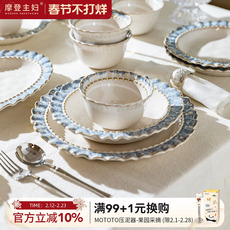 摩登主妇烟蓝陶瓷碗盘餐具家用2026新款米饭碗高级感轻奢碗筷套装