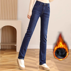 QiQi【法式蓝】早春新款牛仔裤女2026新款弹力烟管显瘦小直筒裤