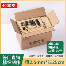 整箱烧烤竹签25cm*2.5mm一次性麻辣烫串串工具羊肉串油炸小吃签子