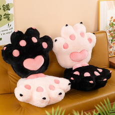 卡通熊掌猫咪毛绒抱枕心形爪印黑粉色办公室坐垫毛绒玩具靠垫卧室
