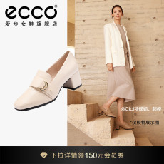 ECCO爱步女鞋粗跟高跟鞋 新款真皮乐福鞋法式小皮鞋 型塑290943