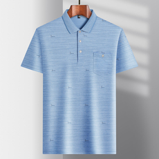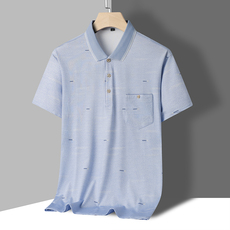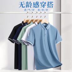 新款夏季中老年冰丝短袖T恤爸爸休闲翻领上衣薄款体恤衫父亲半袖t