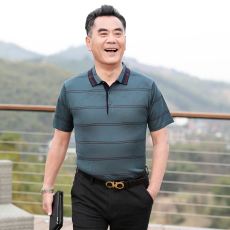 新款夏季中老年男士冰丝短袖T恤爸爸休闲翻领半袖宽松父亲体恤衫t