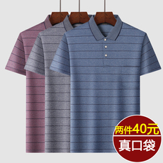 夏季薄款中老年男士冰丝短袖T恤爸爸休闲翻领体恤衫父亲上衣半袖t