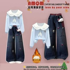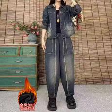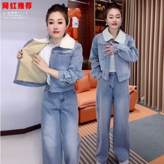 欧货牛仔套装女加绒2024春秋冬季新款休闲时尚洋气减龄保暖两件套