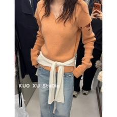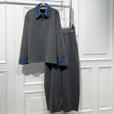 秋冬穿搭复古针织衫毛衣设计感长袖上衣直筒休闲裤牛仔裤子套装女