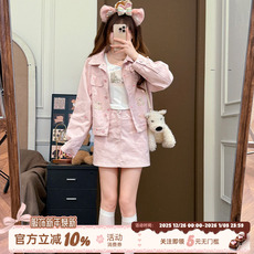 欧货2025春秋新款港风休闲时尚牛仔外套短裙套装女水洗做旧两件套