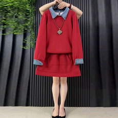 春秋大码胖mm300斤运动服套装女拼接牛仔外套休闲长裤两件套ins潮