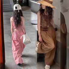 F PROJECT 自由街头 松弛荡领吊带背心/松紧休闲阔腿裤牛仔套装女