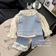 女童牛仔马甲套装秋季韩版女孩三件套中大童休闲新款童装春秋爆款