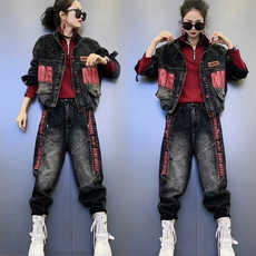 大耳象女童牛仔马甲系带休闲牛仔裤秋季新款宝儿宽松潮流休闲套装